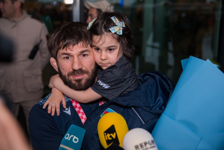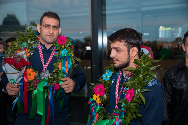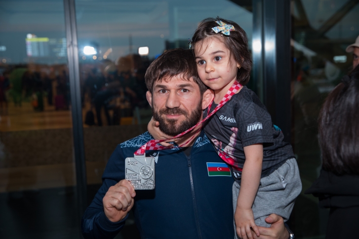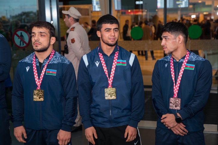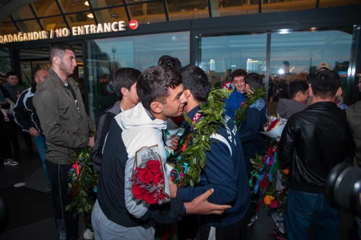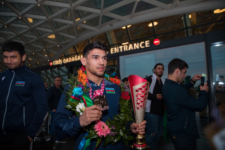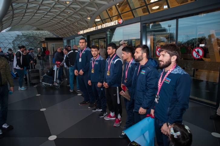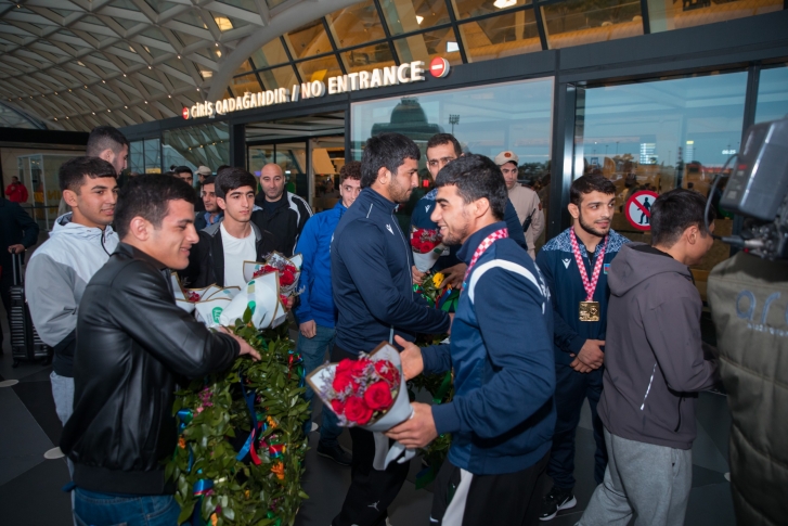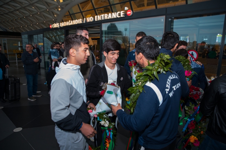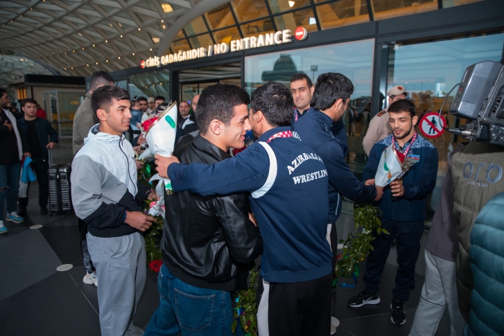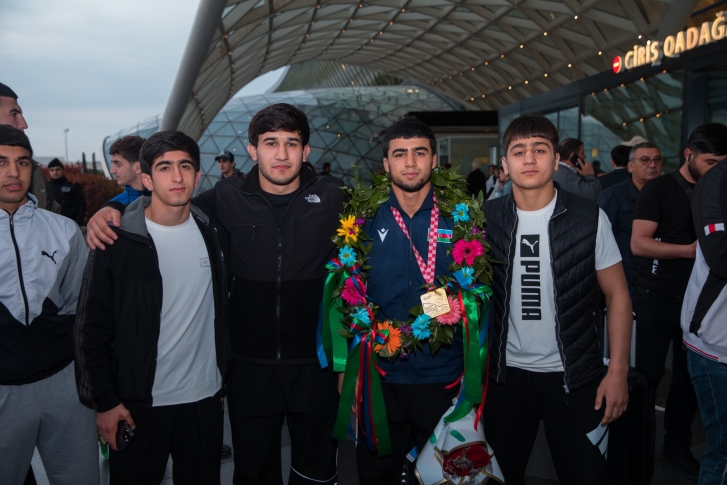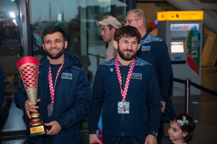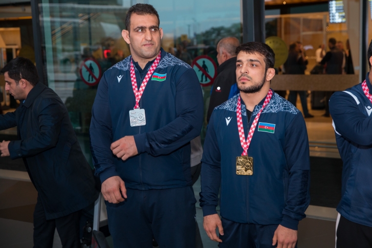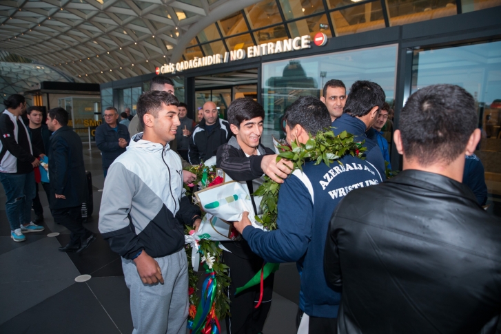 Zaqrebdə 2 qızıl, 3 gümüş və 1 bürünc medalla komanda hesabında 2-ci yeri tutan yığma komandanın üzvlərini Heydər Əliyev Beynəlxalq Aeroportunda Gənclər və İdman Nazirliyinin və Azərbaycan Güləş Federasiyasının rəsmiləri, məşqçilər və idmançılar qarşılayıb.