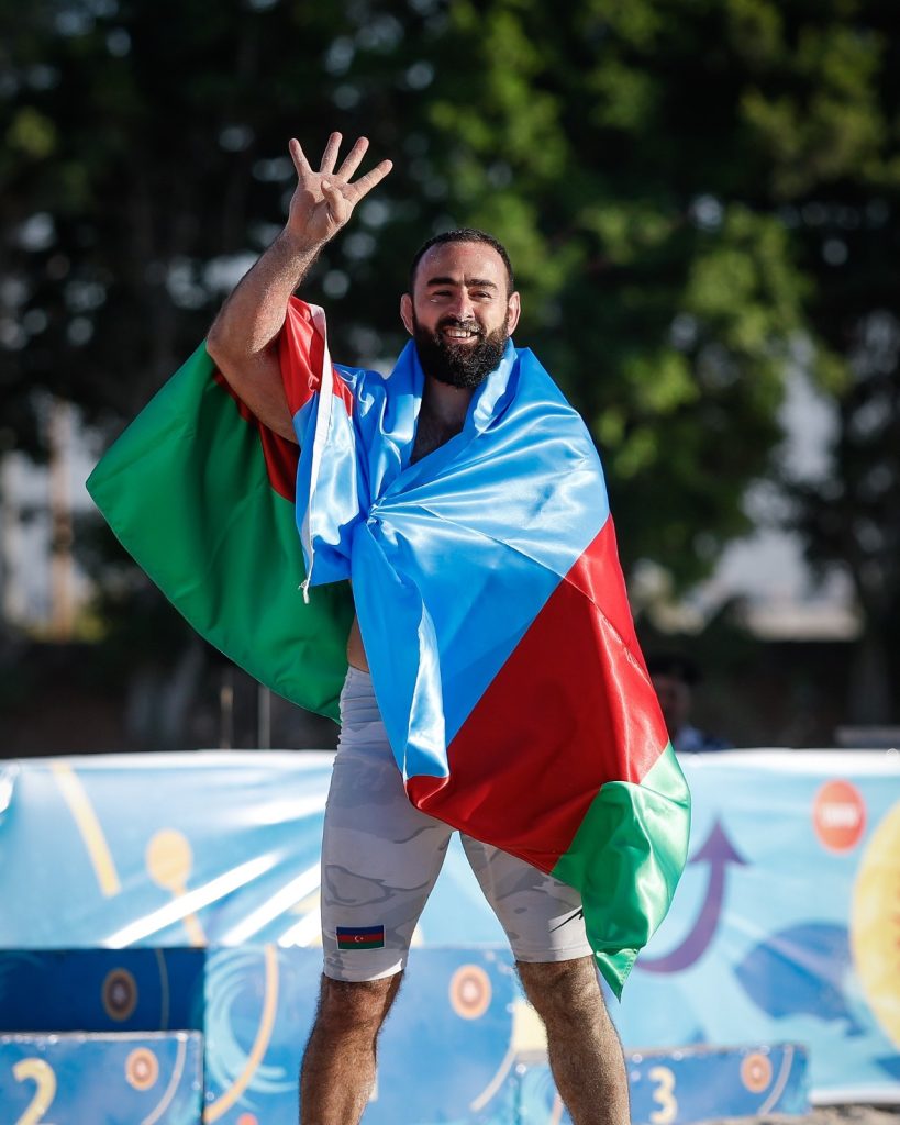 Azerbaijan’s rise on the international stage began in 2019. That year, Oyan Nazariani won the +90 kg title in the inaugural season of the World Series, earning the nickname “Big Gun” and becoming the country’s first world champion in beach wrestling. His achievement laid the foundation for a run of success.